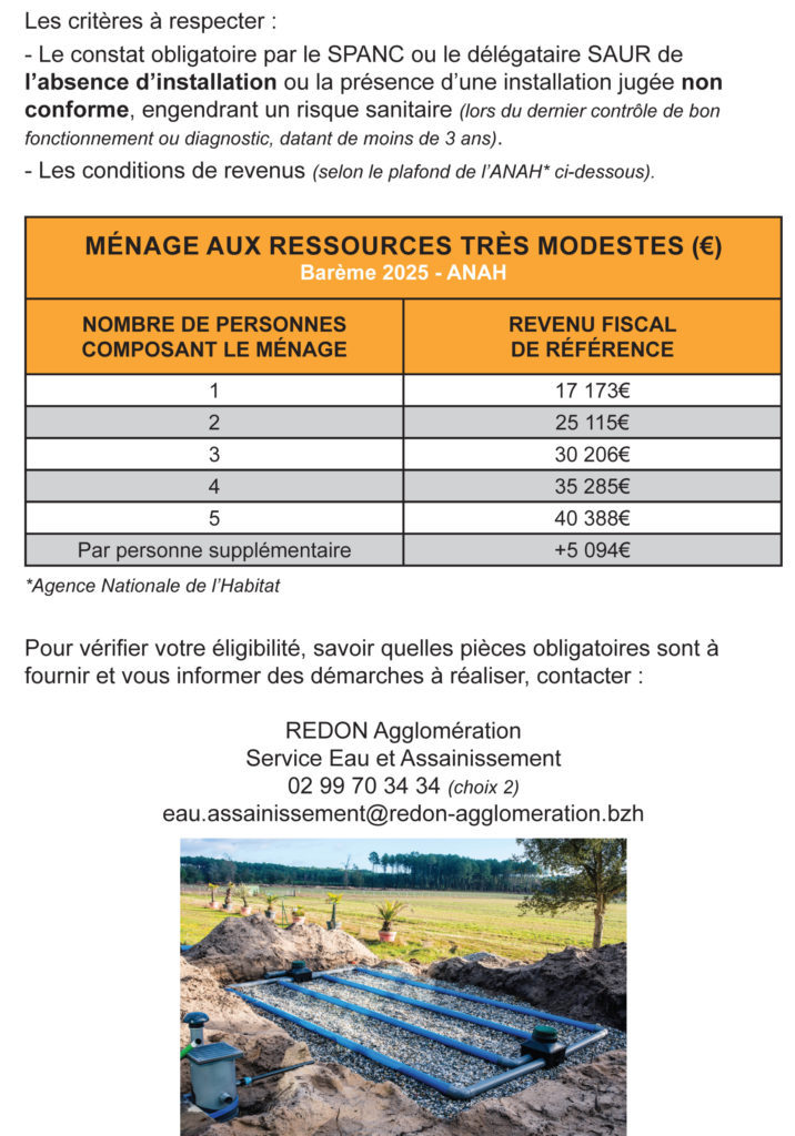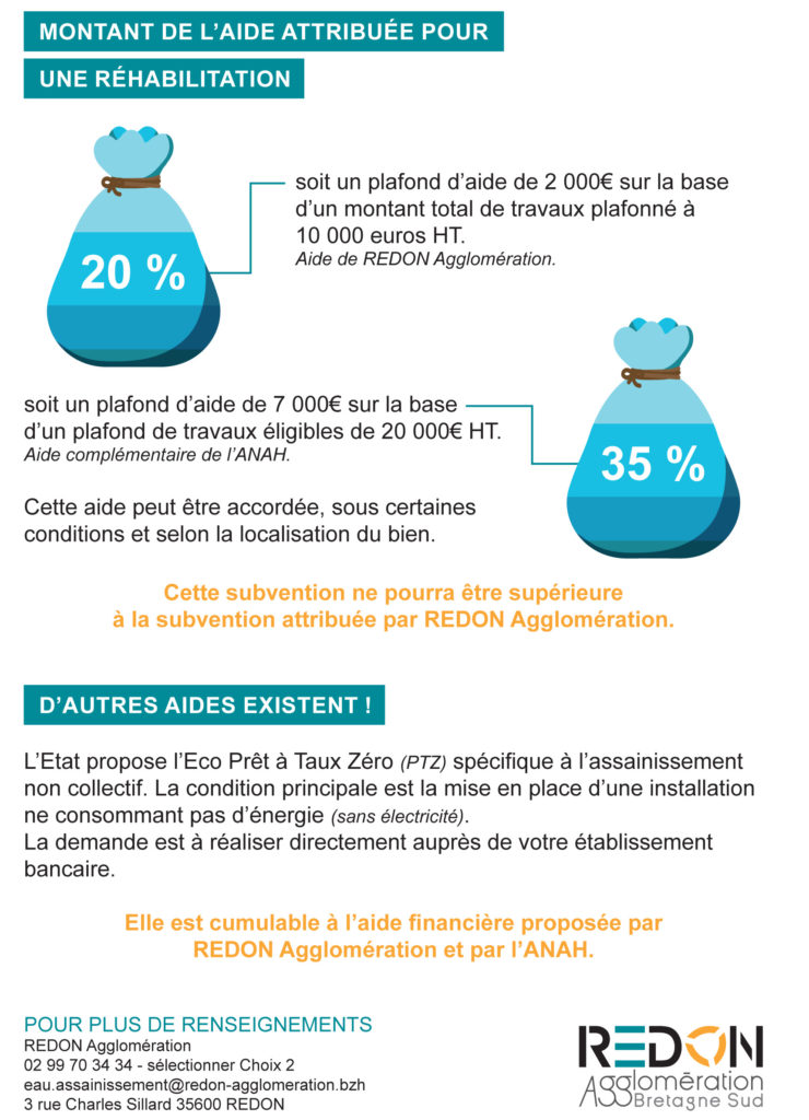 Si lors des derniers contrôles, les services ont relevés une non conformité de votre assainissement, vous pouvez bénéficier d’aides par Redon Agglomération prou la mise aux normes.