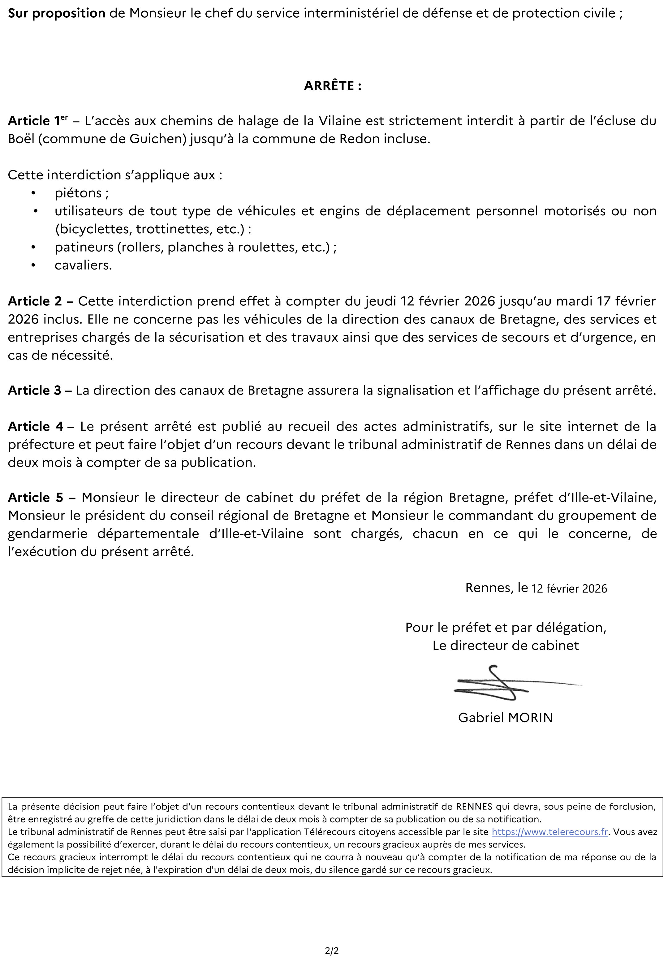 L’accès aux chemins de halage de la Vilaine est strictement interdit à partir de l’écluse du Boël (commune de Guichen) jusqu’à la commune de Redon incluse.