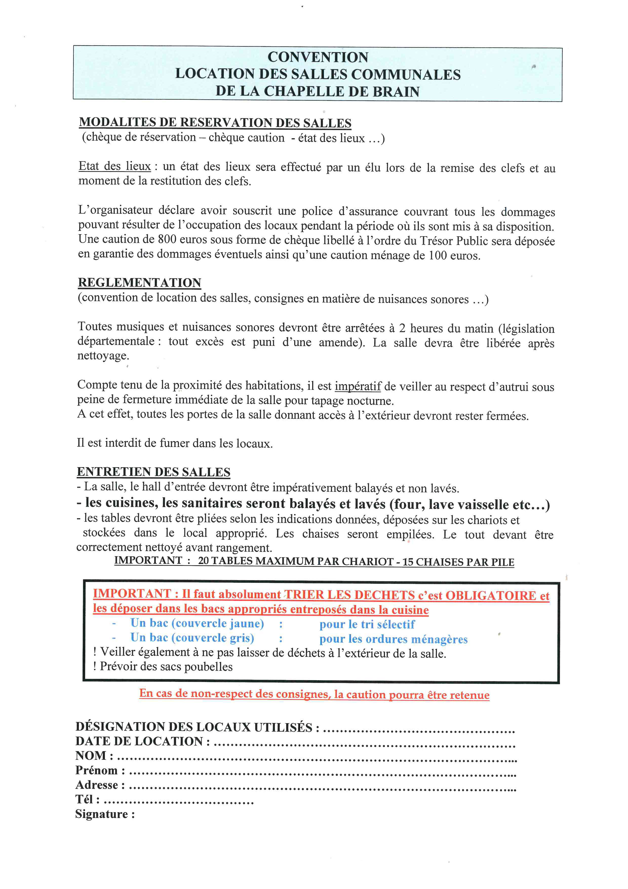Pour tous renseignements ou réservations, contactez le secrétariat de Mairie au 02 99 70 20 03 ou par mail mairie@lachapelledebrain.fr